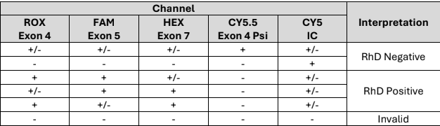 The Atila Rhesus D Genotyping Testing (RhDGT) Kit is a molecular assay designed to detect the presence of RhD exon 4, exon 5, and exon 7, as well as the exon 4 pseudogene form with a 38-bp insertion. The kit utilizes real-time quantitative PCR (qPCR) to analyze genomic DNA or cell free DNA extracted from whole blood samples, providing a reliable and precise determination of RhD status at the molecular level and includes Internal Control (IC) for monitoring test performance in each individual test. This test is intended for research use only and should be performed by trained laboratory personnel with expertise in molecular biology techniques.